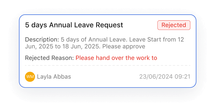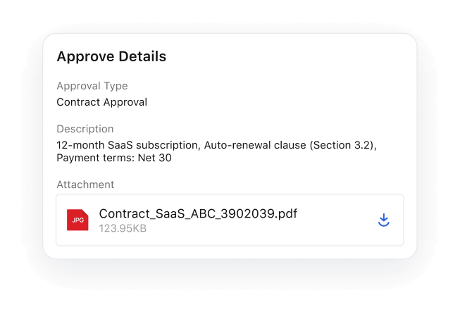 Review attachments, or greenlight requests straight from notification alerts. Urgent? Tap ✔/✖ without opening the app – decisions made in seconds.