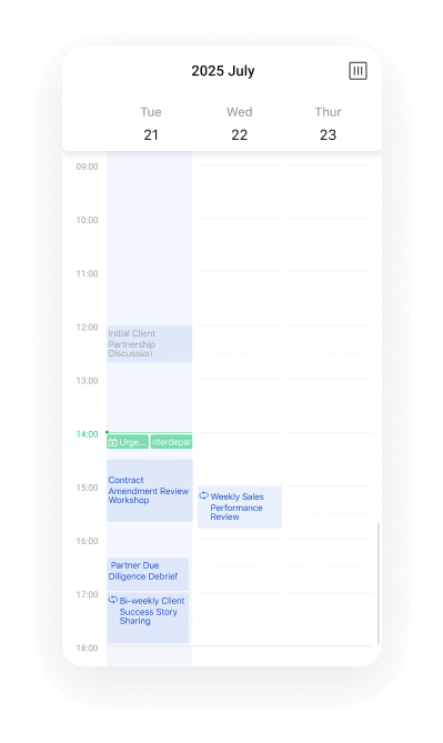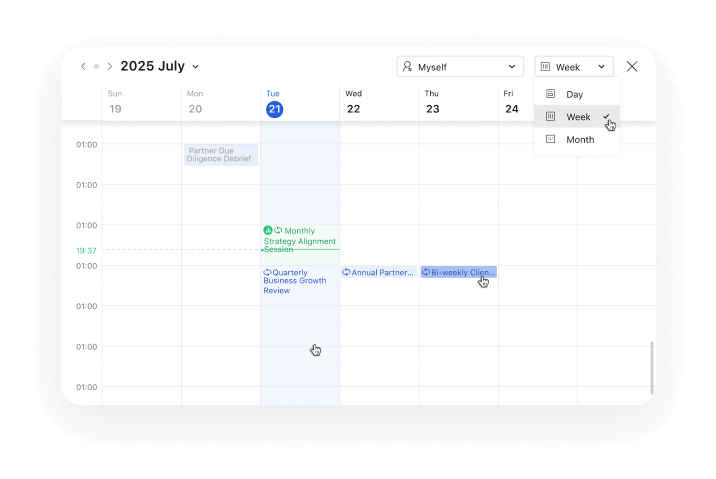 Centralize schedules, meetings, and team coordination in one intuitive workspace. Share control, avoid conflicts, and ensure every commitment aligns seamlessly—no matter who’s managing it.