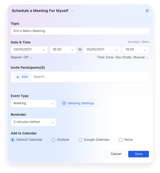 Create, track, and adjust meetings directly in your calendar. Easily view all your scheduled meetings, invitations, and recurring events in one organized space - keeping your schedule clear and conflict-free.