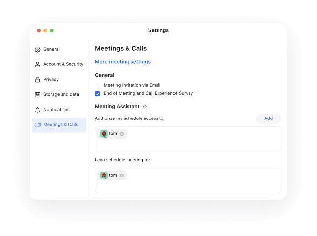 Assign trusted teammates as schedulers or proxies to manage your agenda. Maintain visibility and control while empowering others to coordinate on your behalf.