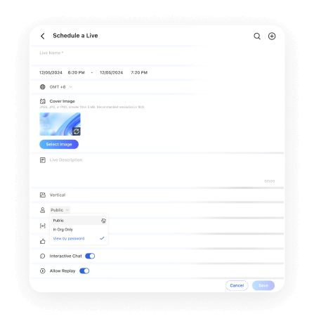Pre-set resolutions, custom thumbnails, and granular access controls to ensure professional broadcasts every time.
