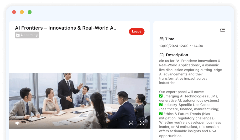 Enable multi-guest live interactions with synchronized streaming, elevating your broadcast through diverse expert perspectives.
